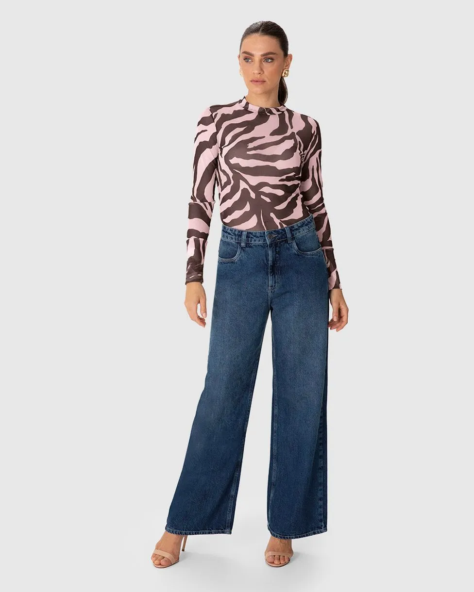 A Blusa Justa Feminina Zebra Gola Alta Manga Longa em Tule Stretch - ENFIM é a escolha ideal para quem busca estilo e conforto com um toque moderno e sofisticado. Com estampa zebra exclusiva e tecido leve, ela valoriza a silhueta e traz personalidade para o seu look.