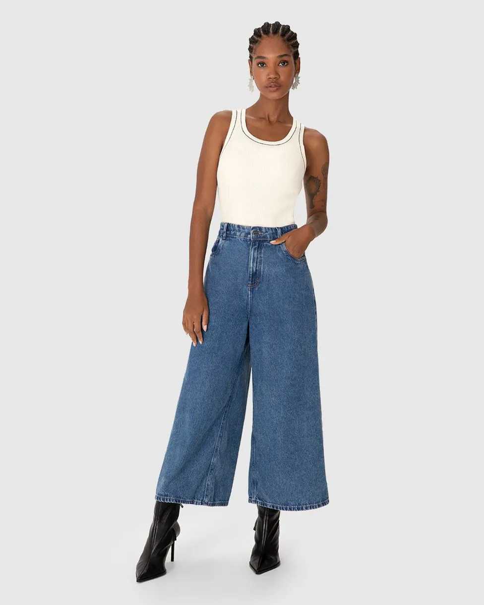 A Regata Justa Feminina Detalhe Costura Contraste em Tricô - ENFIM é uma peça essencial para looks casuais com estilo. Com modelagem ajustada e acabamento diferenciado nas costuras, oferece conforto e um toque moderno para o dia a dia.